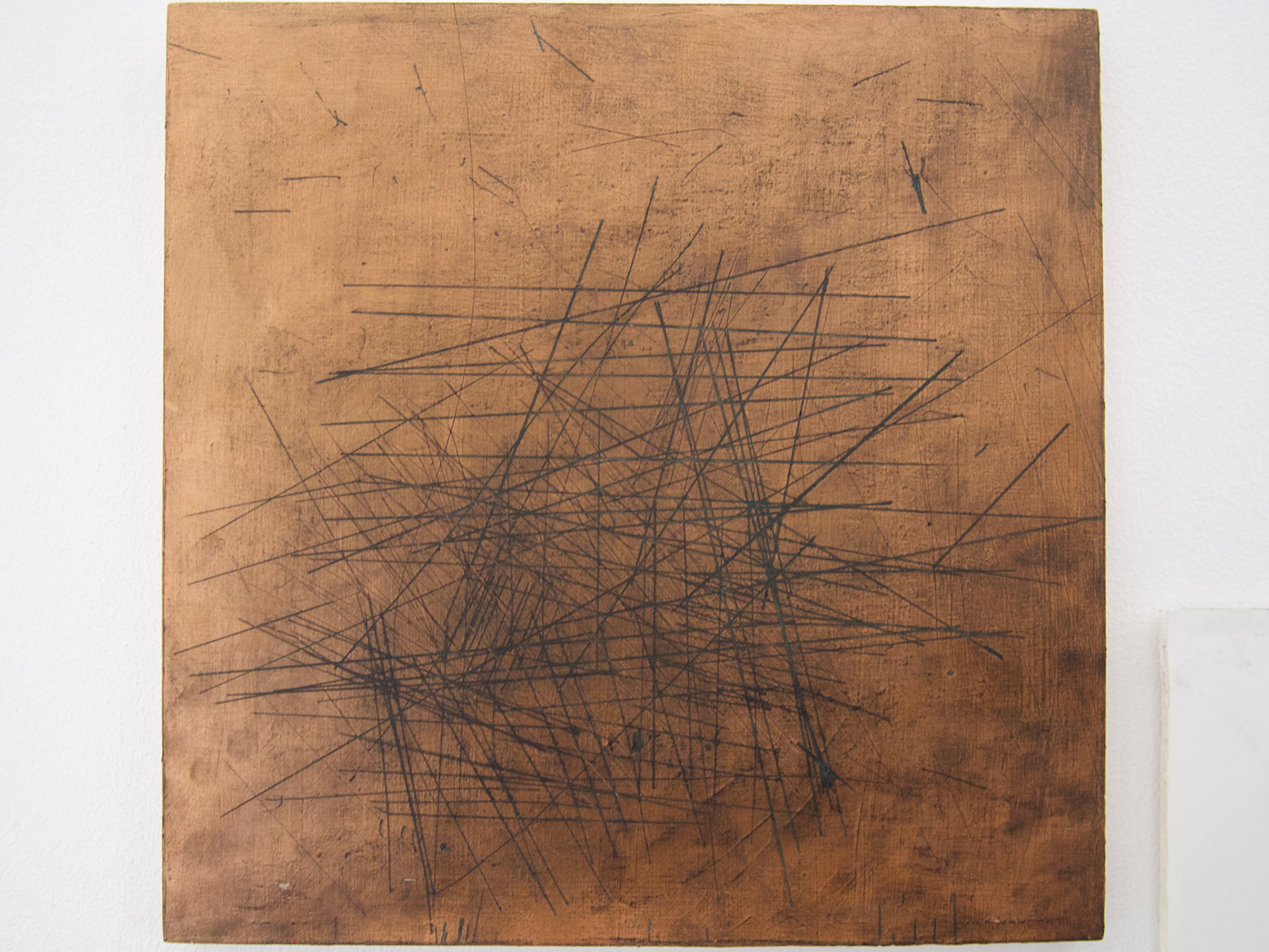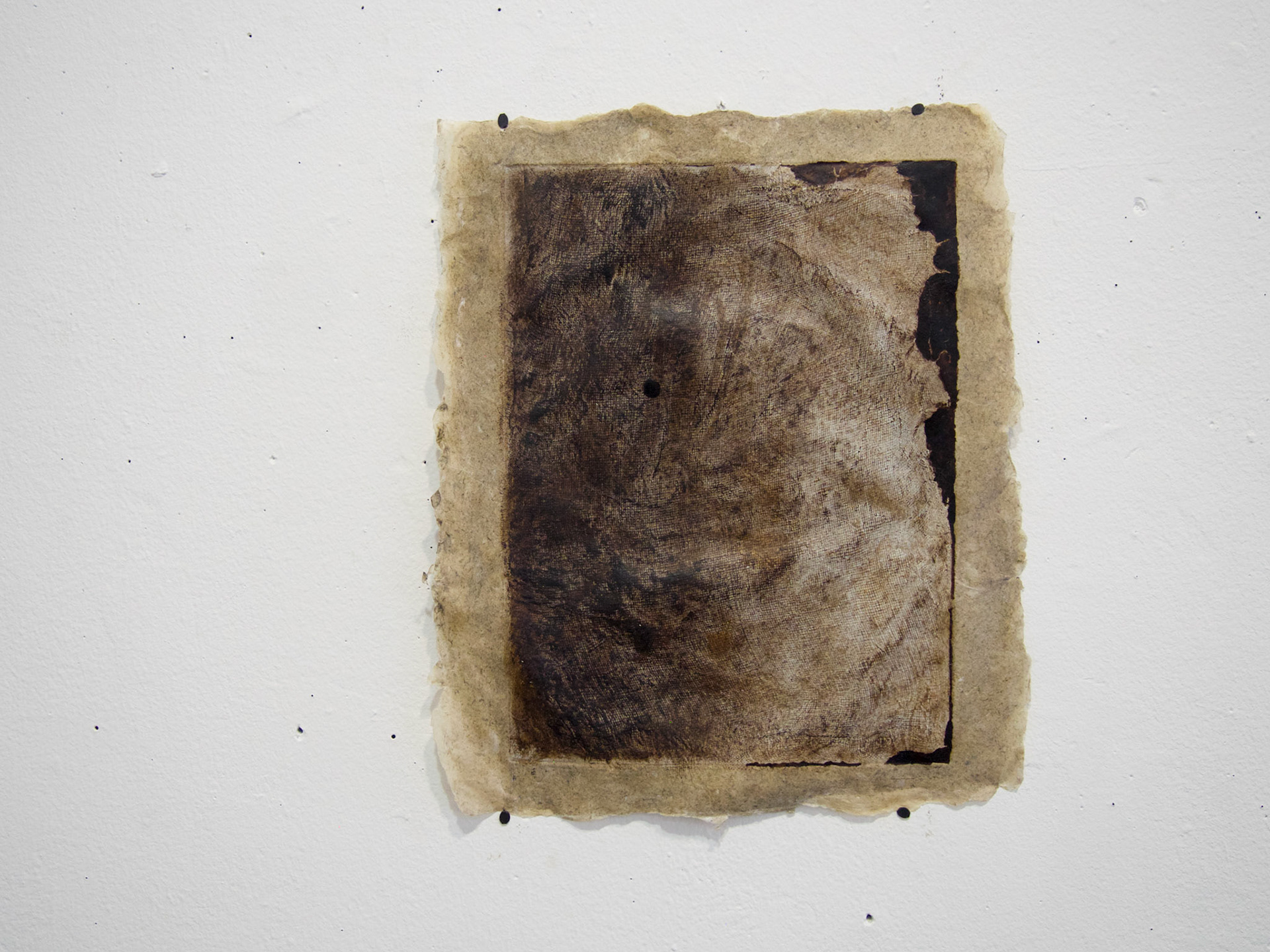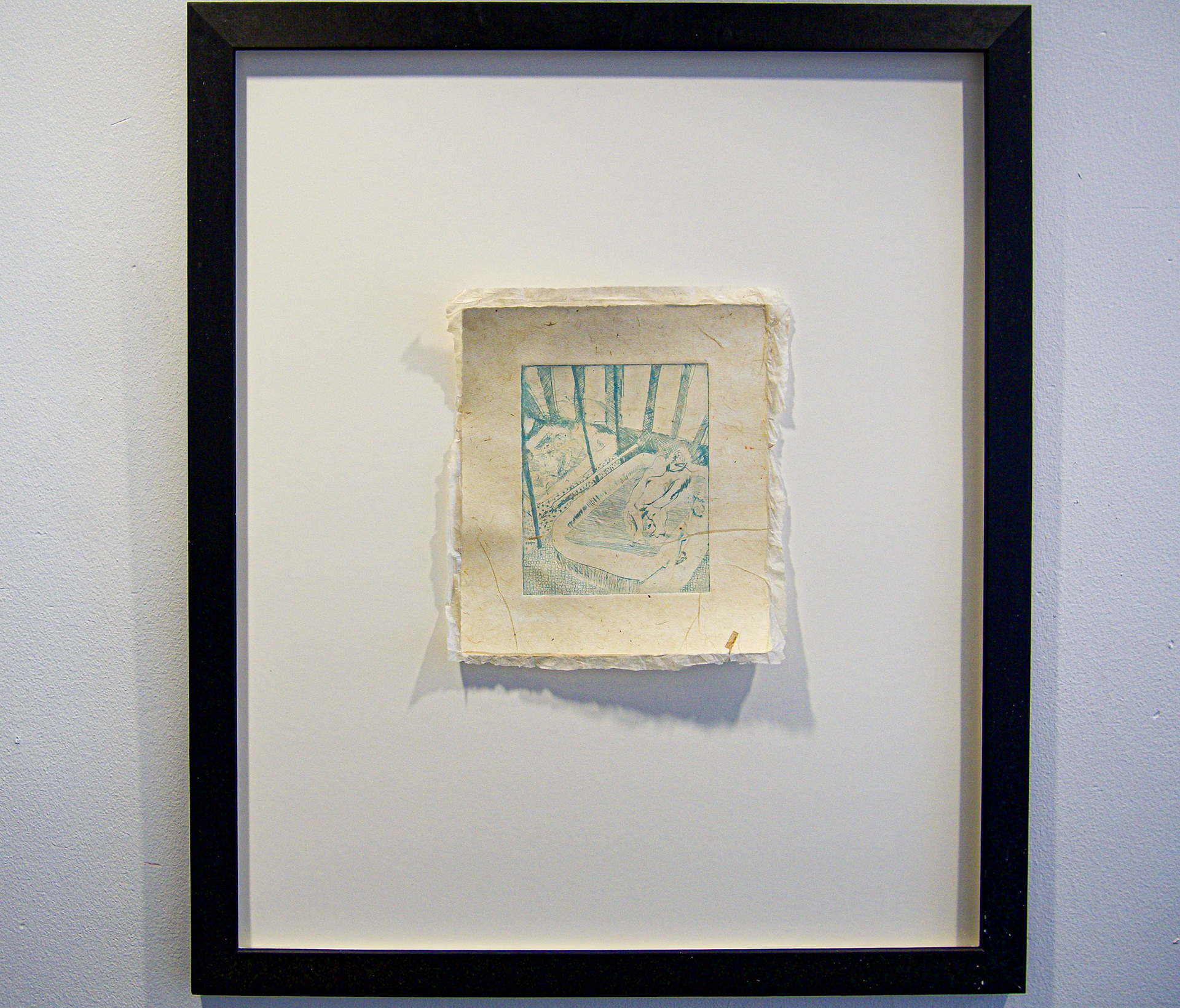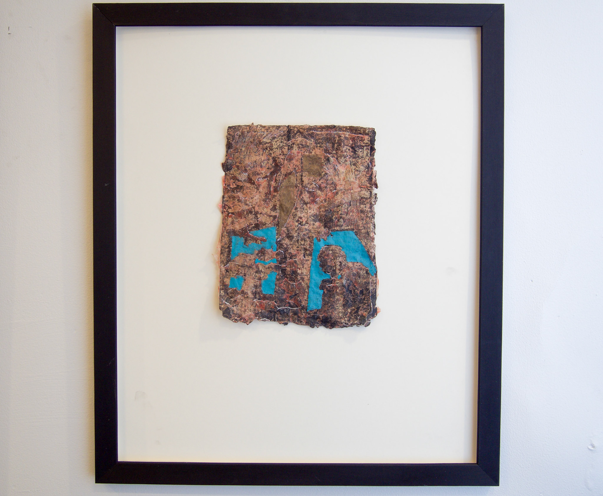 Muscle and gut,Your metalwork ribboned and bunched like a clumped nerve, 5” x 6”, Intaglio and flax chine-collé