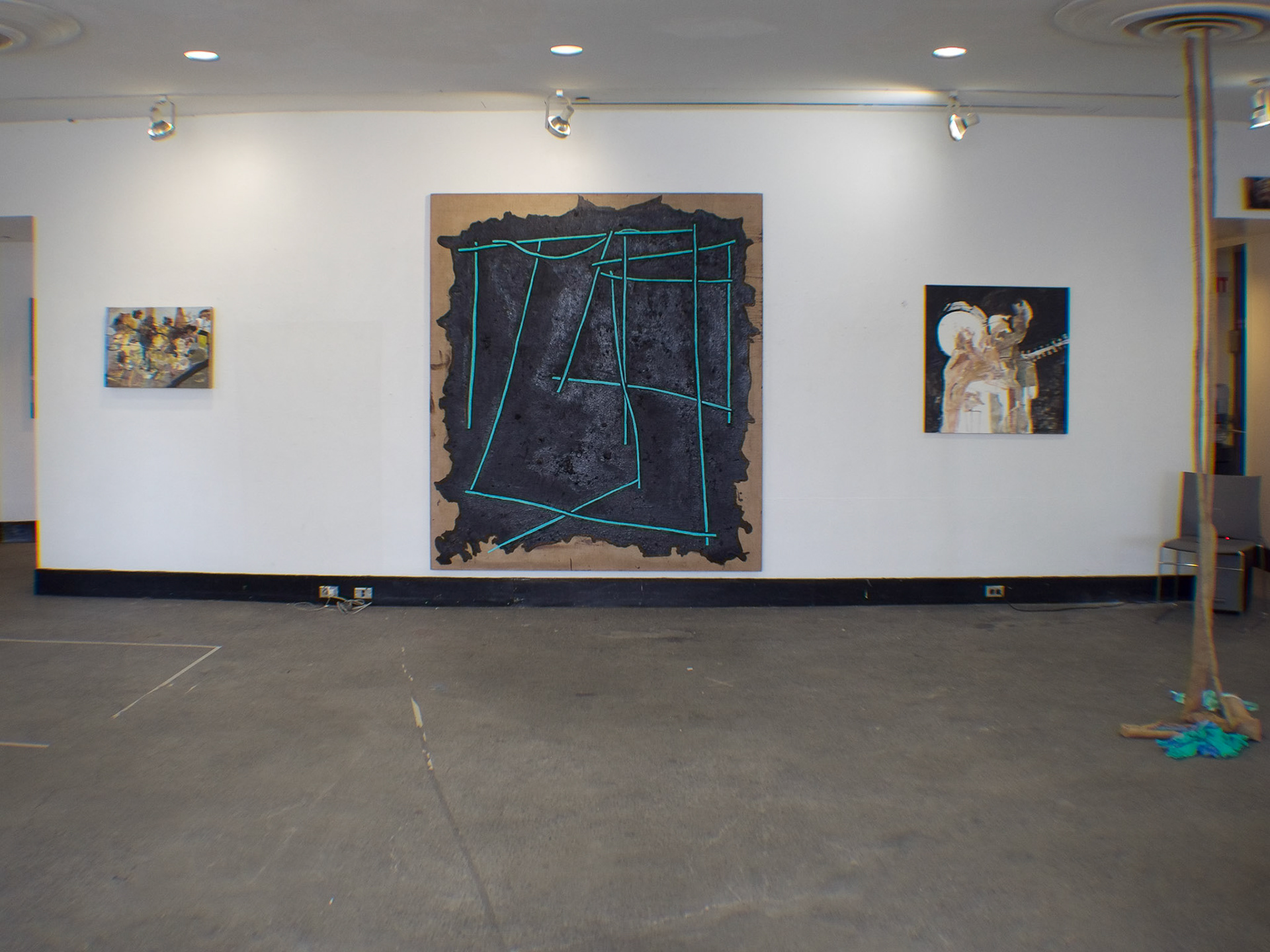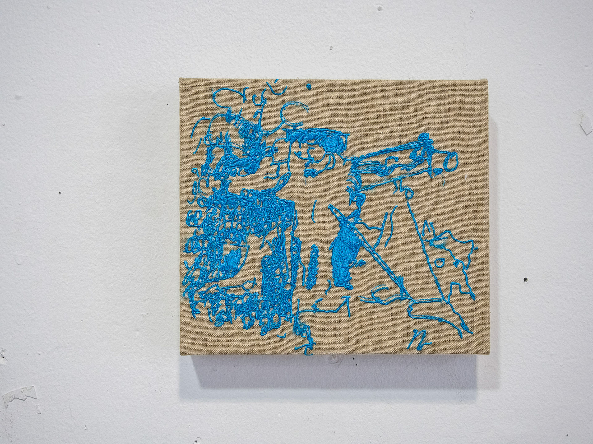 No one talked about the alternatives.Ink, collage, tar and Tiffany blue on linen 2022