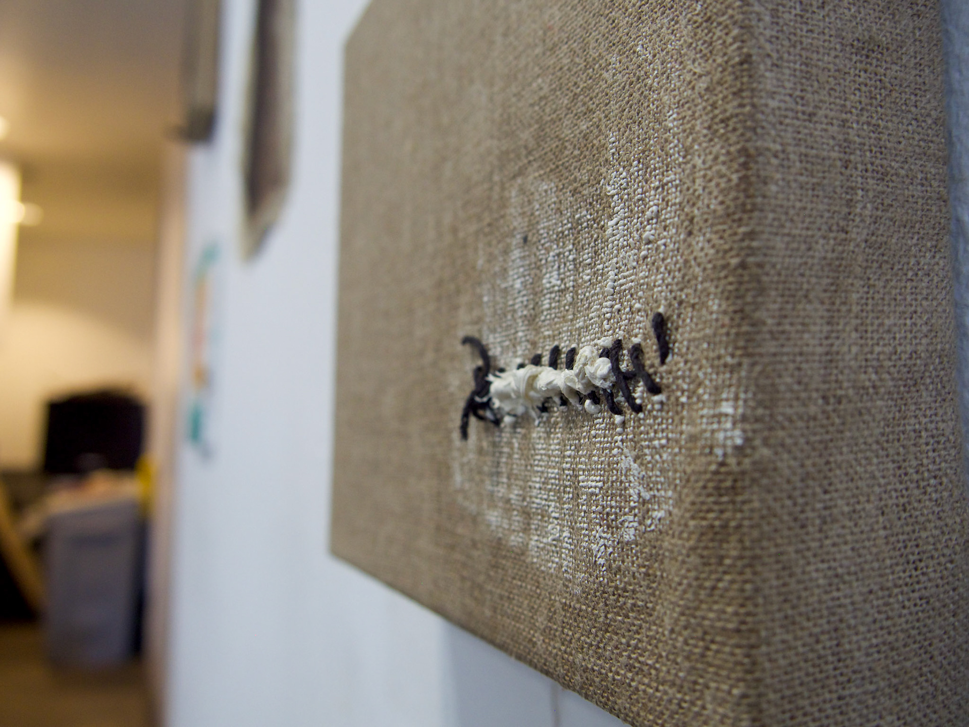 One large chunk at a time, stuffing it into my dry mouth whileMy sister and father slept.Oil and debris on linen 2022