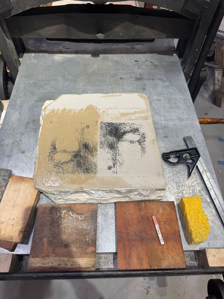 Residual Pane is an edition of 100 hand-printed stone lithographs created by S. Barber Kennedy for the guest rooms of the Foundation Hotel in downtown Detroit. Commissioned by Parini, a design studio known for its thoughtful integration of art and interior architecture, the project embodies the ethos of both the artist and the hotel: reverence for craft, history, and the layered presence of place. Printed at 3 Recurring, Barber’s fine art print shop at Dive Studio in Corktown, the edition draws upon the surfaces or the architecture using rubbings a visual residue eventually imparted onto lthe lithographic stone. These remnants became a starting point for an image that holds presence and absence in tension, much like the city itself. The work engages themes of fragility, memory, and permanence, echoing the adaptive reuse of the Foundation Hotel’s own architecture, once a firehouse now reimagined as a space for rest and gathering. Each print in Residual Pane is housed in a custom shadow box frame, designed to float delicately within its enclosure, offering a quiet moment of stillness and reflection to guests who encounter it. In its surface and structure, the work honors the visible and invisible labor that sustains Detroit’s cultural and material life.